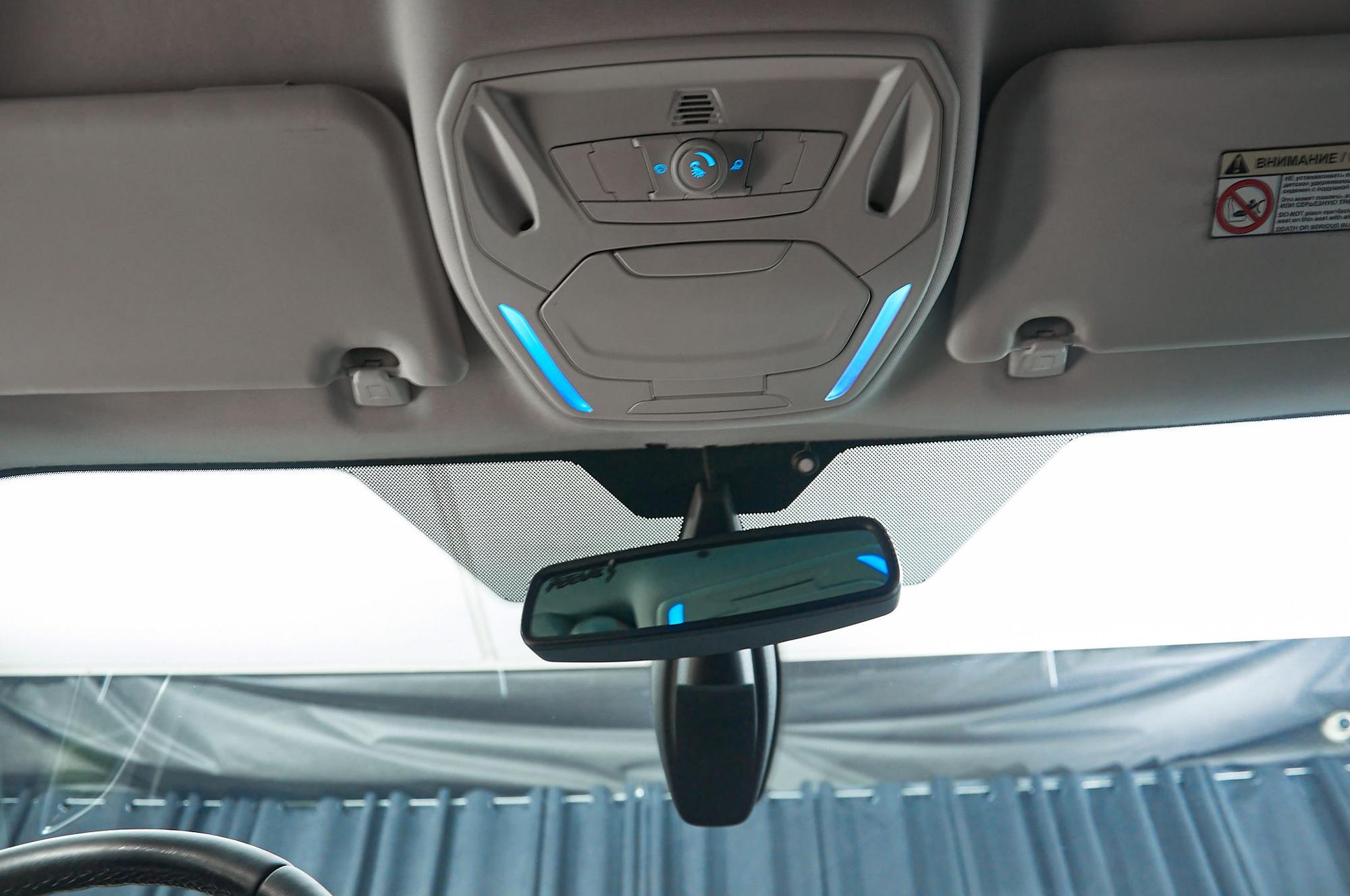 Внутренняя потолочная панель высокого уровня, включающая футляр для очков и ручки для задних пассажиров